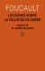 | | |  | Libro disponible en Agapea.com: Lecciones sobre la voluntad de saber | | Estos textos constituyen la transcripción del primer año de los cursos dictados por Michel Foucault en el Collège de France. |