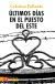 | | |  | Libro disponible en Agapea.com: Últimos días en el Puesto del Este | | El anhelo de algo ausente es lo único que mantiene a la Polaca en pie ante la partida del Capitán, su pareja y líder de un grupo que resiste a la presión de los fundamentalistas que los esperan fuera de su refugio, el Puesto... |